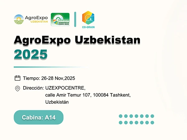 Henan Co-Grain Machinery Engineering Co., Ltd. participará en AgroExpo Uzbekistán 2025 Henan Co-Grain Machinery Engineering Co., Ltd. se complace en anunciar su participación en AgroExpo Uzbekistan 2025, la Exposición Internacional de Maqu...
