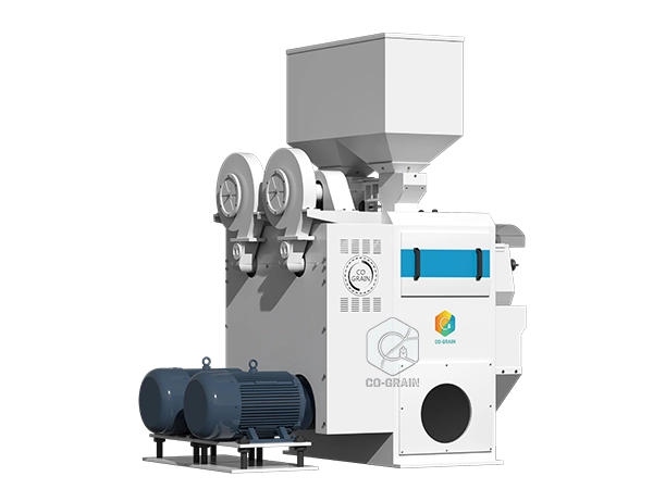 Alimentación y Descarga de Precisión: Un mecanismo de alimentación uniforme distribuye el arroz de manera uniforme a ambos rodillos, minimizando el blanqueo desigual y la rotura. El sistema de descarga suave garantiza un funcionamiento continuo y un flujo de producto limpio.